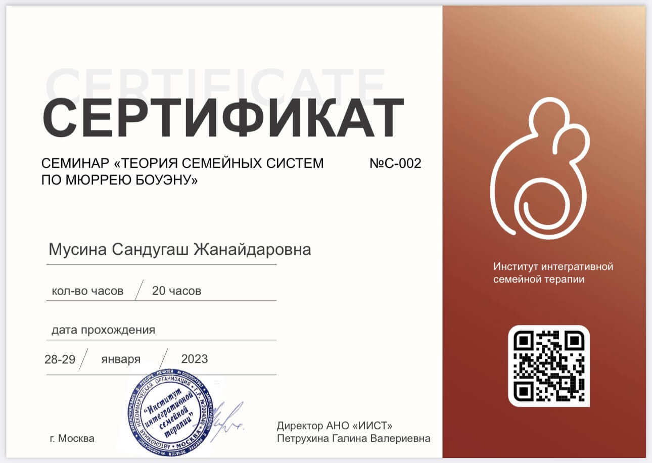 Спасибо вам, Сандугаш! Вы очень много сделали для нашей семьи. Единственный психолог, который нашел подход.