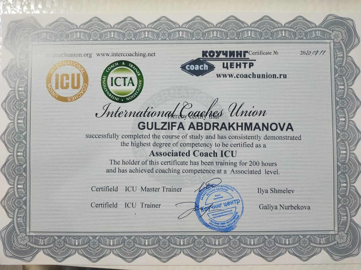 Международная ассоциация коучей ICU - коуч Институт современного образования - психолог- консультант ИИСТ - расстановщик