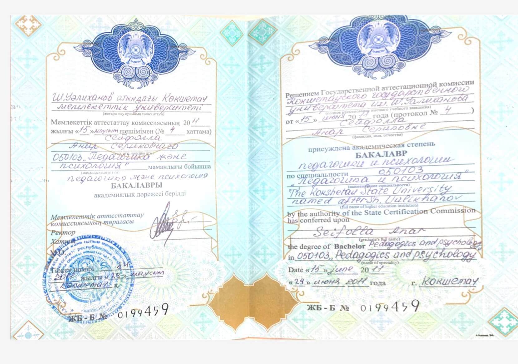 Мое образование Казахстан, Кокшетауский Государственный институт им.Шокана Уалиханова Педагог психолог (бакалавр) Российская Федерация Омская гуманитарная Академия Детский психолог (Магистр психологических наук) London,Коуч Международной компании Wisefull